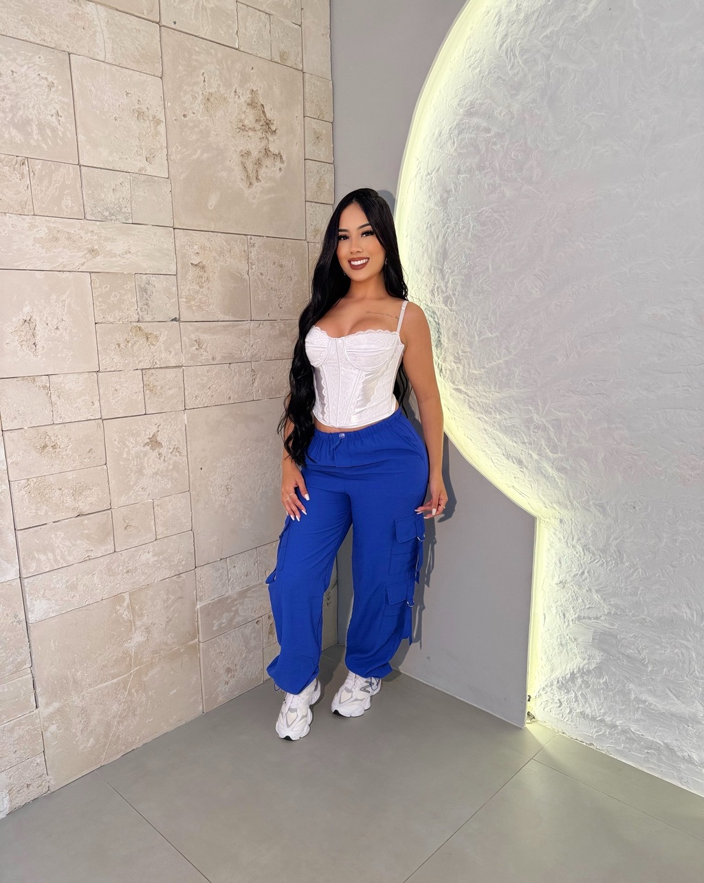 Detalhes: POSSUI BOLSOS NAS LATERAIS , ELASTICO AJUSTAVEIS NAS BARRAS E CINTURA (MODELO JOGGER)